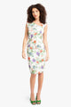 The Lena Sheath is a strapless midi length dress. White with floral detail. This dress is perfect for a bridal shower or summer wedding. With its lightweight fabric and flattering fit, the Lena Sheath will have you feeling your best on your big day!